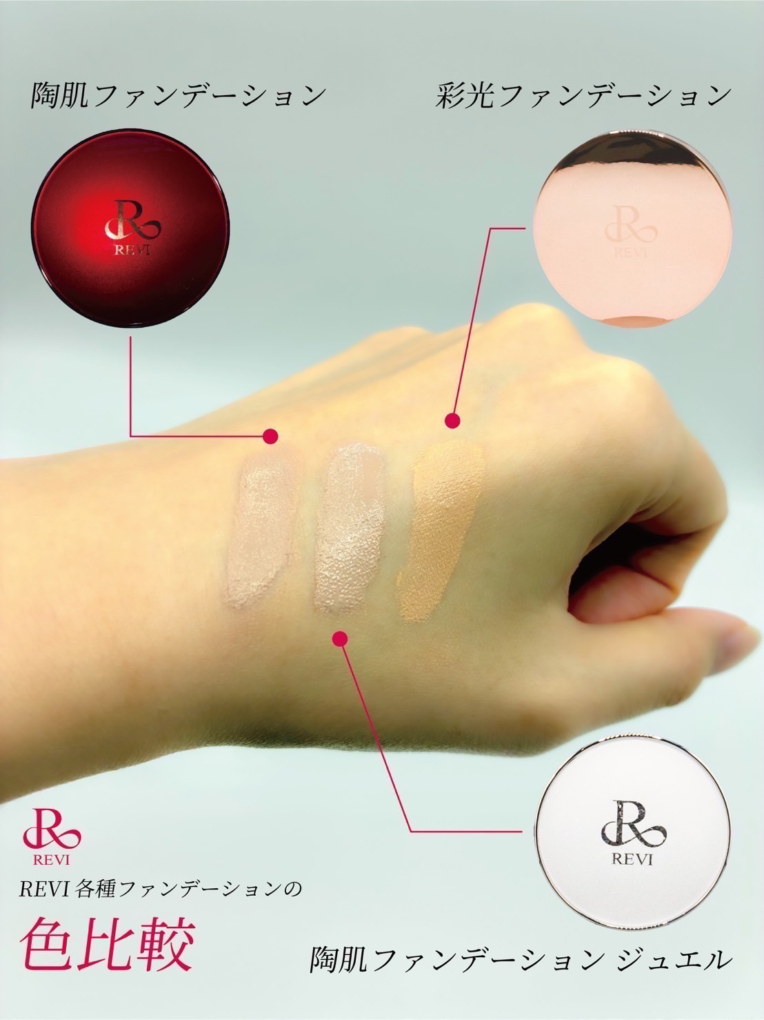 リフトアップには陶肌ファンデーション、光で彩った最高のツヤ肌を生み出すには彩光ファンデーションという形でお使いください。